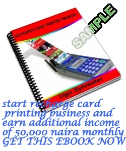 you take advantage of the tips I’m offloading to you here on this post. Start printing recharge cards (Voucher) and make over N50, 000 monthly guaranteed. I will be revealing to you new secrets of making N50, 000 printing GSM recharge vouchers cheaper and selling profitably to over 30 call centers in your area. The commonest challenges faced by every entrepreneur, even the successful ones is the fear of the unknown and so you are not alone but don’t let it stop you from becoming the next GSM millionaire. Have you observed that all the GSM operators have introduced lower recharge card values in N100, N150, N200, N250, N300, N400 and N500? Why do you think they all now have these lower recharge vouchers? One thing can only explain the reason for the lower recharge cards, it sells faster. Operators are experiencing a boom in recharge card consumption since the introduction of lower recharge cards. Now relate this to selling of these lower recharge cards. The demand for these lower recharge cards is high compared to the higher ones. The printing and distributing of voucher pins are the exclusivity of some few GSM operators’ dealers with license. Well, am not here to wet your financial appetite and leave you waiting. If you are a Nigerian, there is no doubt that you would have been hearing that you can start printing recharge vouchers from your office, even in your rooms. You too can be among the few people that can print and distribute these fast selling vouchers in your area. And you don’t have to become a GSM operator’s licensed dealer that would be a costly process. You can take advantage of dealers who have the license but don’t wish to print themselves. With their full support and supply of vouchers pins, you are on your way to making N50,000 or more monthly, printing and selling lower recharge vouchers that are hotcakes all over the country whether it’s MTN, Airtell, Glo, Etisalat, you can print them in any quantity you so wish. In case you are wondering if it would not cost you millions to start, not at all, with as low as N10,000 you can start printing vouchers. Some people print with computer, special voucher printing software; one can also just walk into a cyber cafe and, browse for 10 minutes, download the pins, and send it to print at the cafe, pay N10 or N20 per A4 page you print and walk away to sell your vouchers to your customers. For you to start making money from printing recharge vouchers in Nigeria, there are some certain thing you will need to know. Also there are necessary things you will have to put in place before you can start printing recharge vouchers. As a result of this, I have compiled a manual which I will deliver the soft copy in your email box once you send your request to ugovesta@gmail.com OR you can contact VESTERconcept.